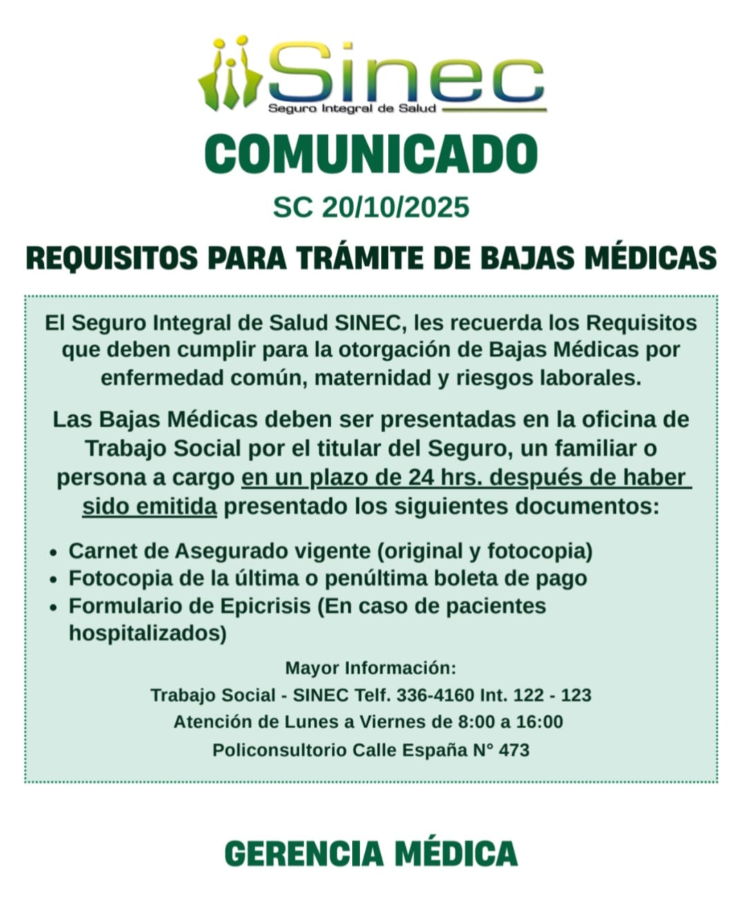REQUISITOS PARA TRAMITE DE BAJA MÉDICA 08/10/2025