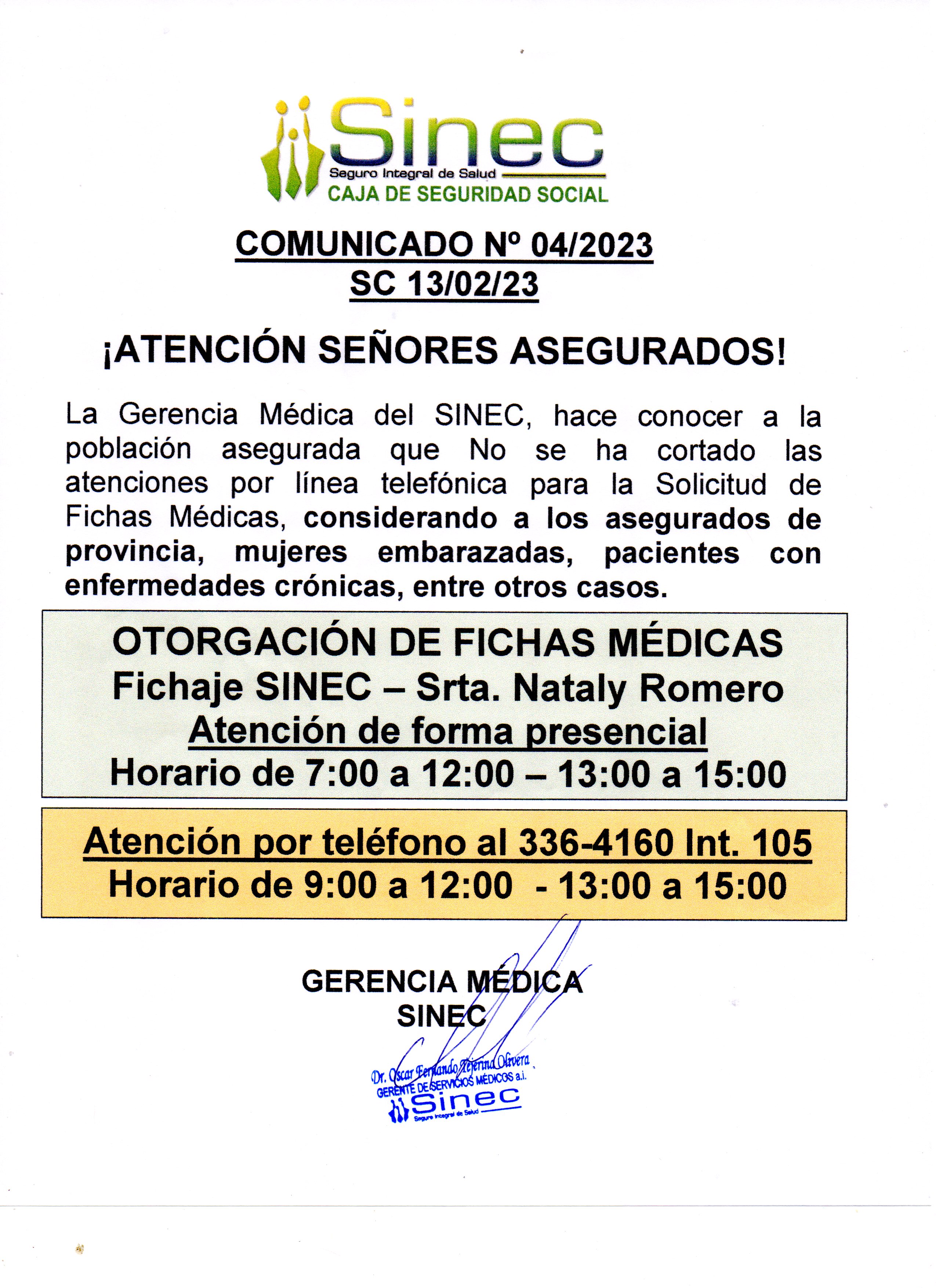 SINEC, la Actualización obligatoria de su carnet de Seguro. Plazo para su actualización hasta el 30 de junio de 2024 Junio 2024. 05/06/2024